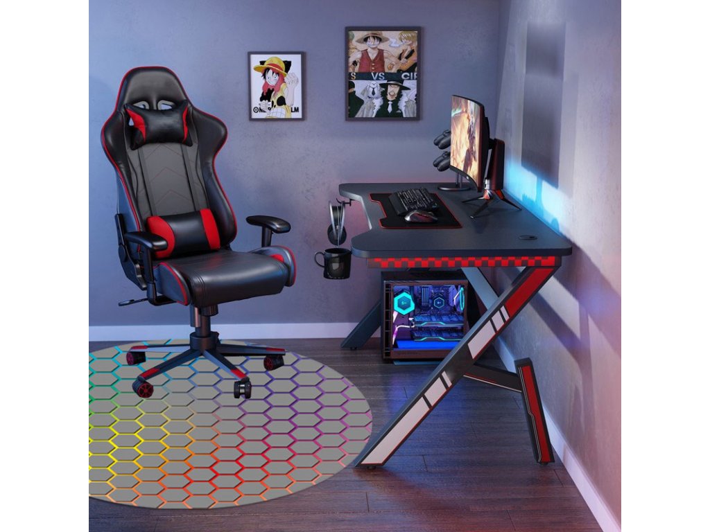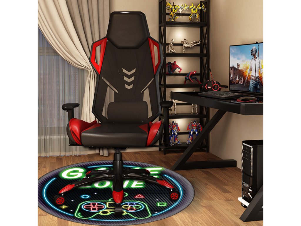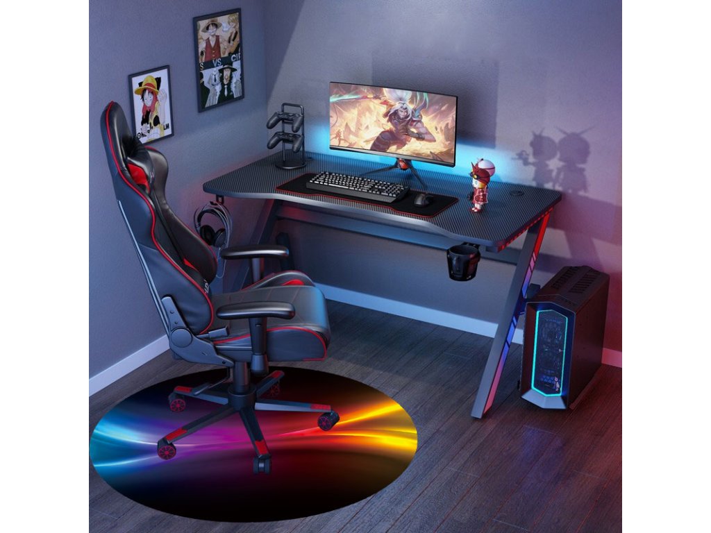 BUKOMA Play – herní podložky pod židli (bez LED) chrání vinyl a další tvrdé podlahy, ztišují pojezd koleček a dodají prostoru herní vzhled. Vrchní textilní povrch z polyesteru je příjemný pro chodidla i pod kolečky, spodní protiskluzová gumová vrstva drží podložku na místě a je bez ftalátů i PAHs. Vhodné do domácích pracoven i herních koutů.