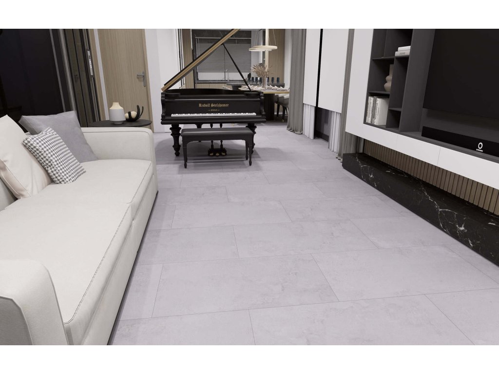 Beton kámen světlý je moderní dekor inspirovaný světlým broušeným betonem. Jemná kresba bez výrazných kontrastů působí čistě, nadčasově a opticky zvětšuje prostor. Skvěle se hodí do moderních kuchyní, koupelen i otevřených obytných interiérů, kde má podlaha působit klidně a minimalisticky.