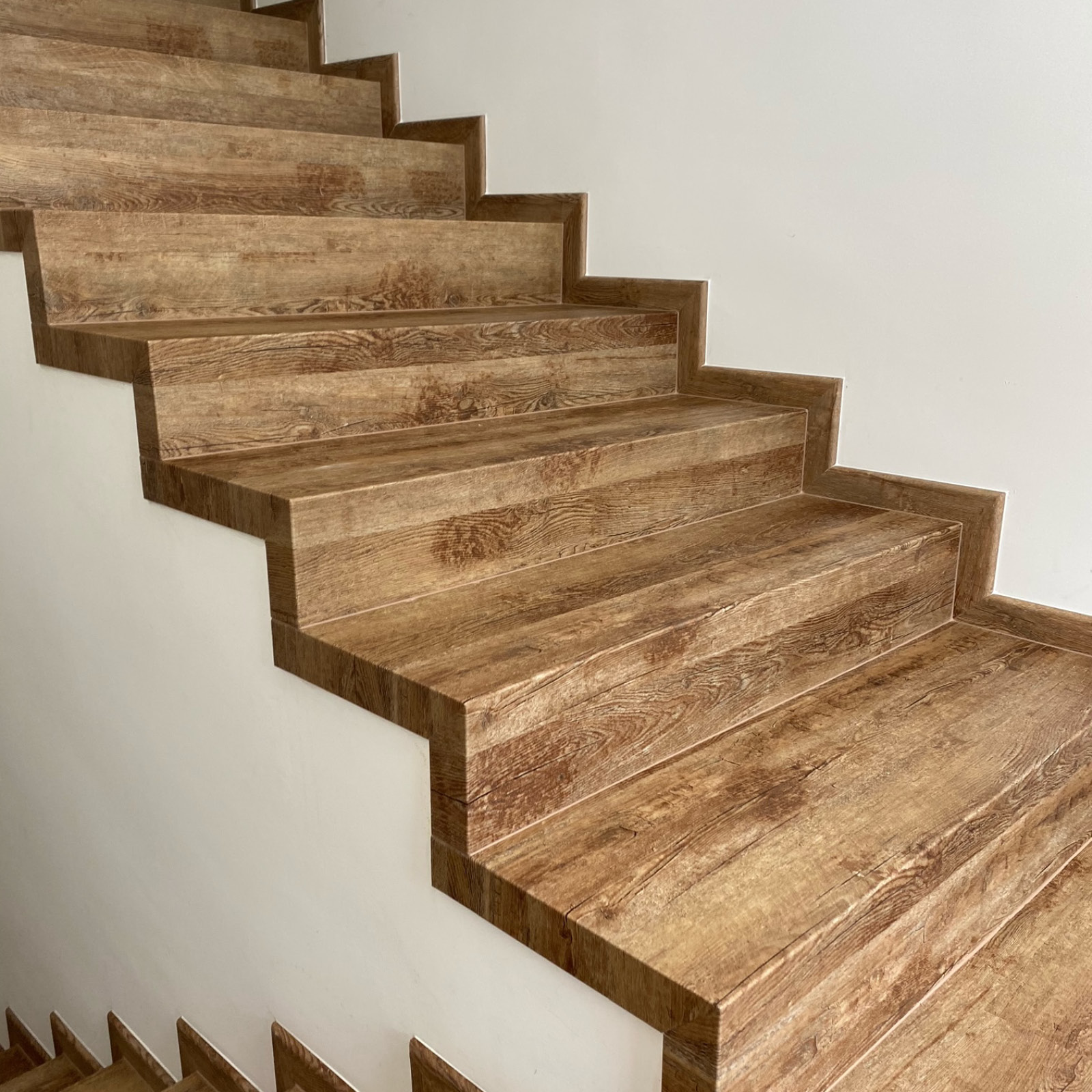 Realizujeme malé projekty od několika m² až po rozsáhlé instalace stovek m². Naší specializací jsou výhradně vinylové podlahy a obklady schodů – díky tomu perfektně zvládáme i nestandardní řešení a detailní práci. Rádi pracujeme s podlahami BUKOMA nebo jinými prověřenými značkami.