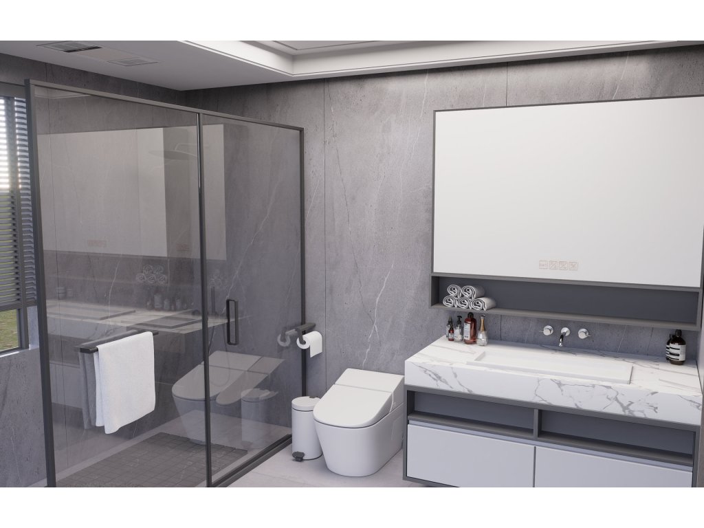 Minimalistická šedá s jemným „betonovým“ nádechem. Čisté pozadí pro moderní koupelny i technické místnosti.