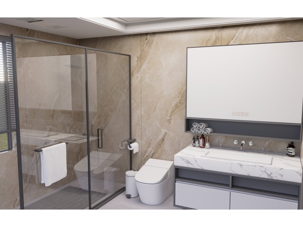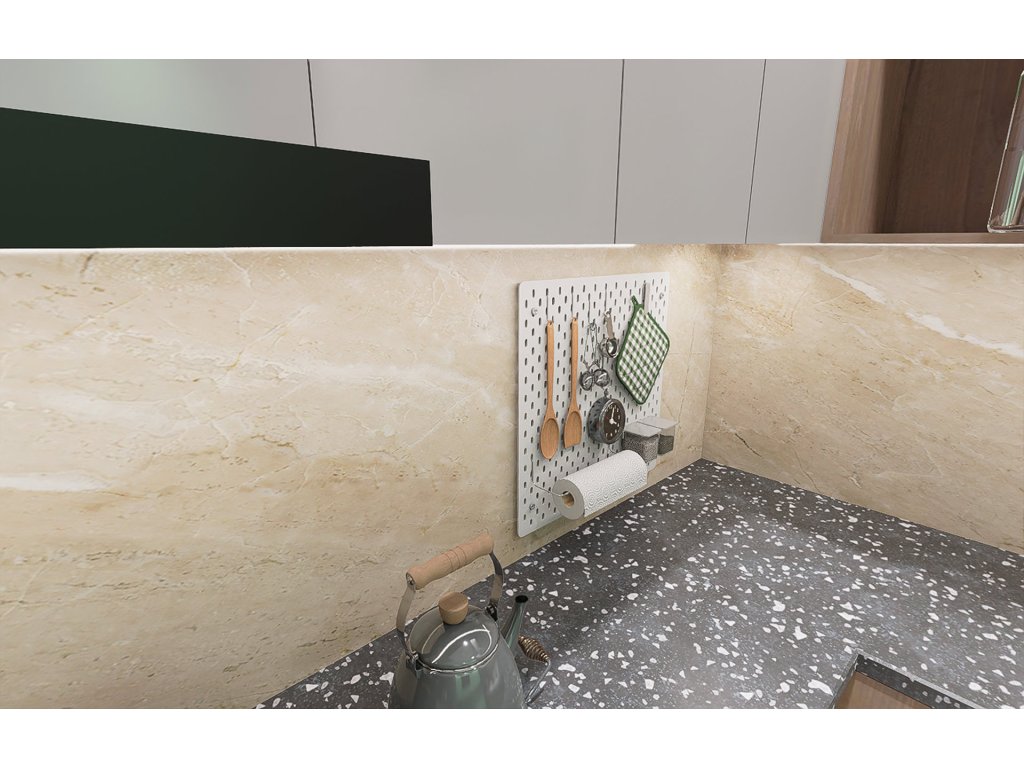Béžové tóny působí hřejivě a snáze skryjí případné nečistoty – praktická volba pro rodinné koupelny i WC. Krásně ladí s matnou černou a dřevem.