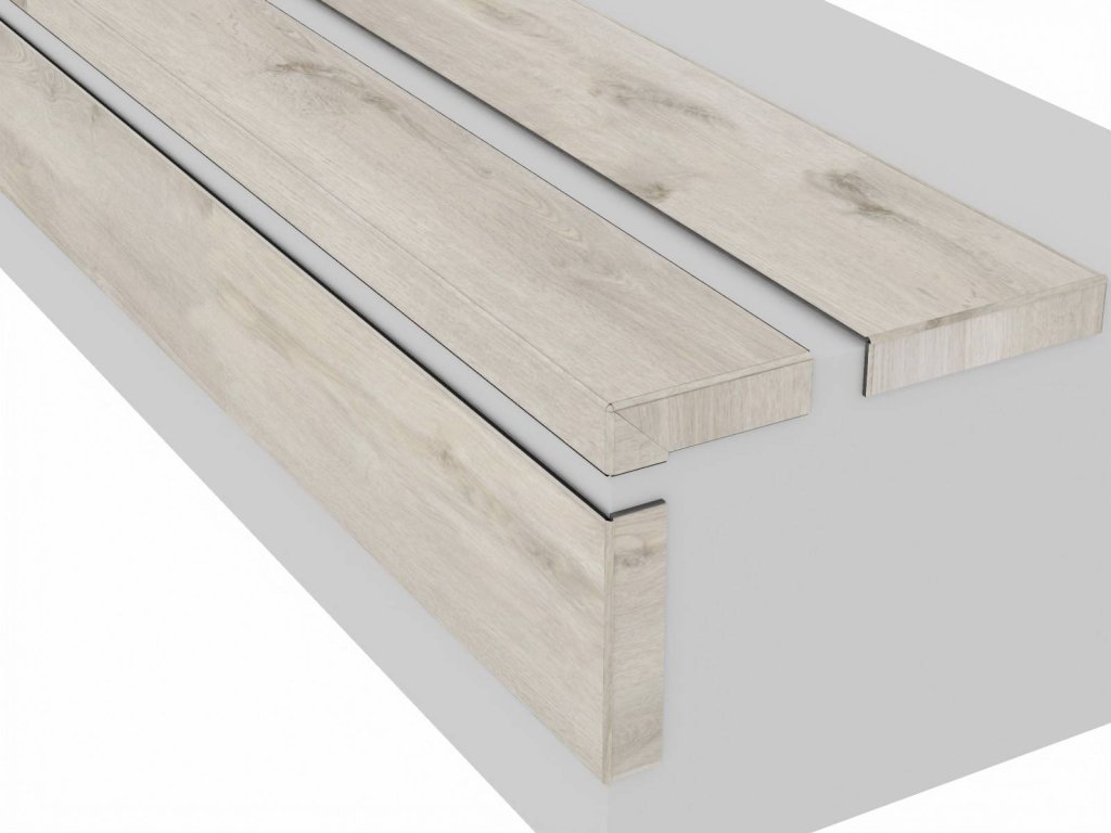 Takto ohnutý vinylový dílec je určen pro hranu schodu s levou / pravou zapravenou stranou, jde navázat na jak na čelo tak i na nášlap námi dodanými dílci s levým / pravým ohybem.