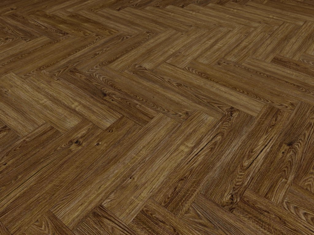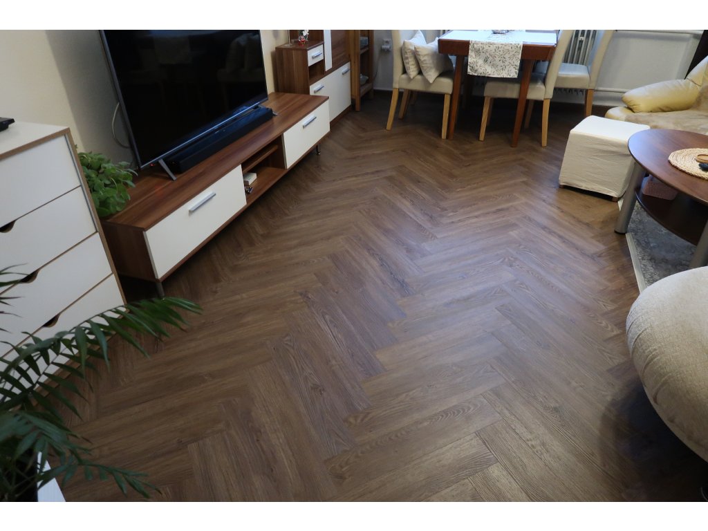 - Pokládka do stromečku (herringbone) – levé a pravé lamely, precizní kresba.