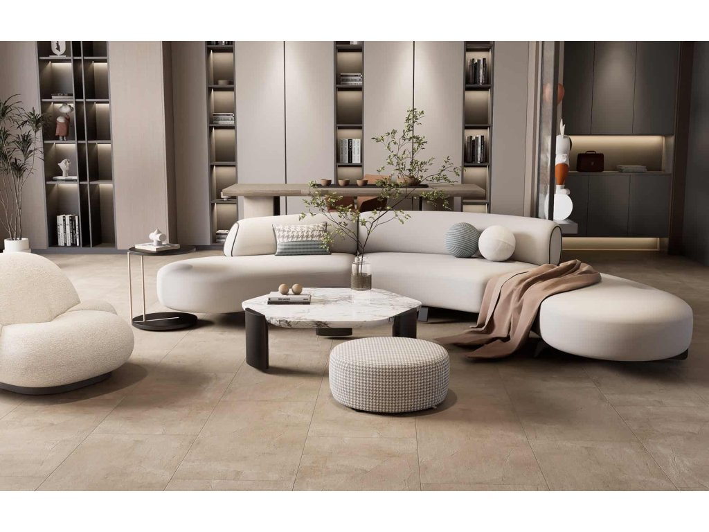 Vinylová plovoucí podlaha BUKOMA STONE U-CLICK XL – Travertine přináší autentický kamenný vzhled inspirovaný přírodním travertinem. Velkoformátové dílce 470 × 940 mm vytvářejí klidnou, jednolitou plochu s minimem spár. Konstrukce 7 mm (6 mm SPC + 1 mm korek) zajišťuje vysokou stabilitu, tichý provoz a komfort při chůzi.