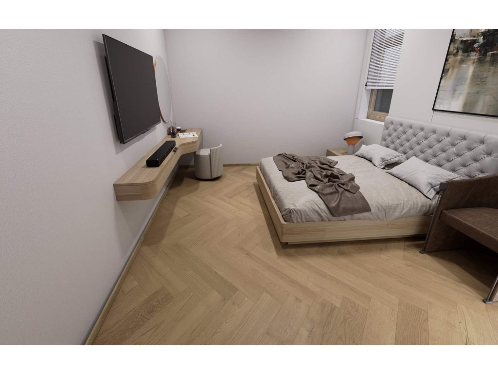Doporučujeme doplnit obvodové soklové lišty – ladí k tomuto dekoru i k herringbone vzoru: