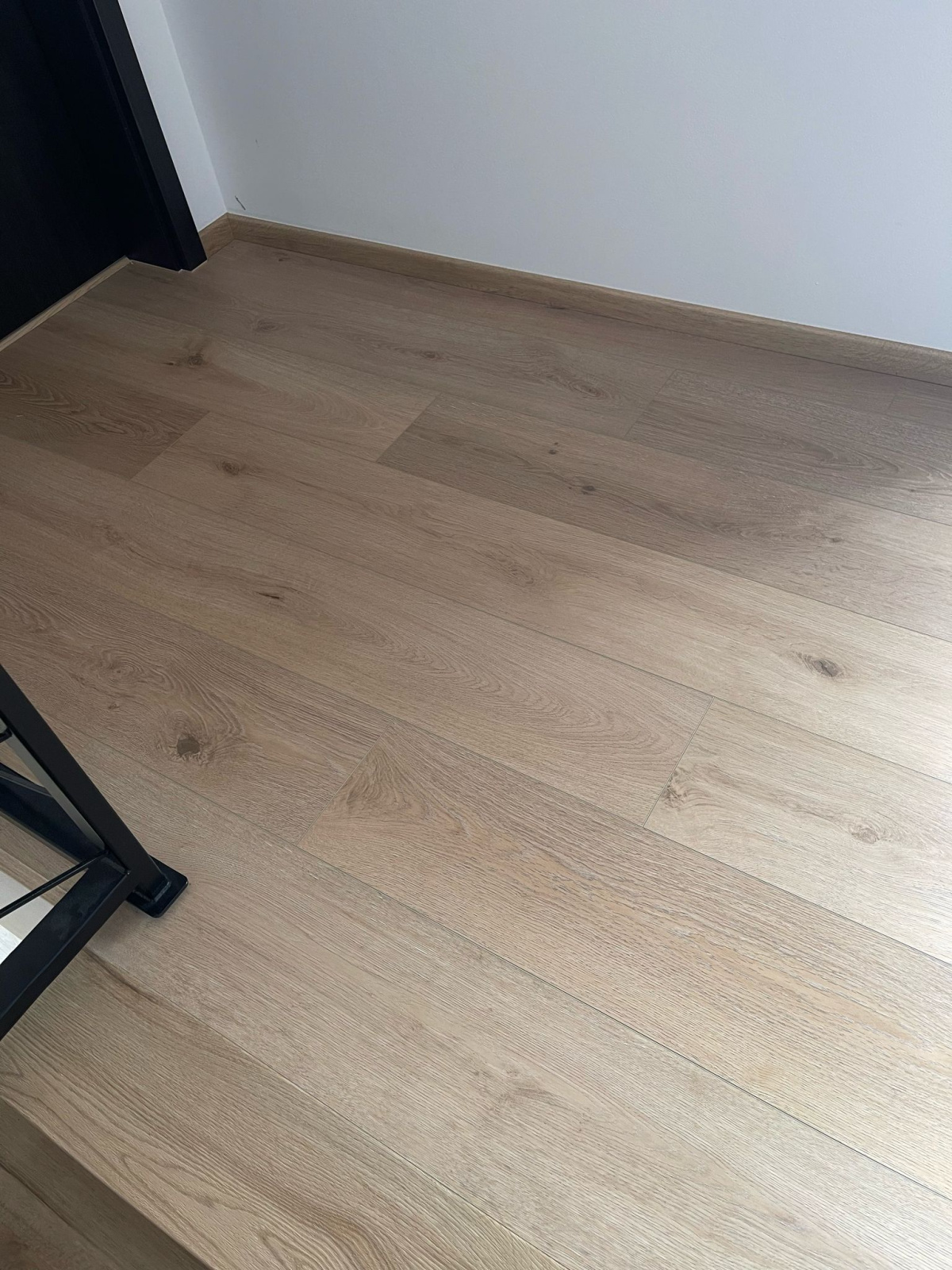 Podlahu jsme pokládali na celý obytný prostor, čímž jsme docílili sjednoceného a harmonického dojmu v celém interiéru. Tento typ vinylu je nejen esteticky atraktivní, ale také vysoce odolný vůči opotřebení, nenáročný na údržbu a vhodný pro domácnosti s dětmi nebo domácími mazlíčky.
