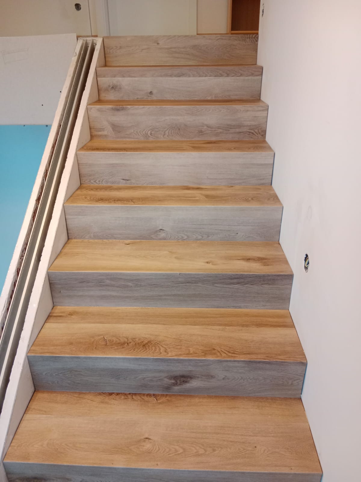 Další ukázka práce podlahářů z Bukomy, obklad schodiště vinylovou podlahou BUKOMA PREMIUM U-CLICK Dub Přírodní, varianta schodů bez nosu. Místo real...
