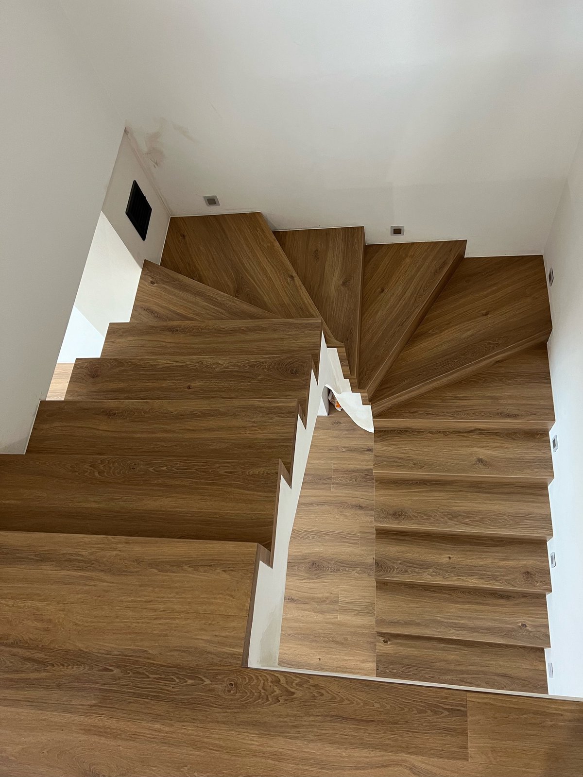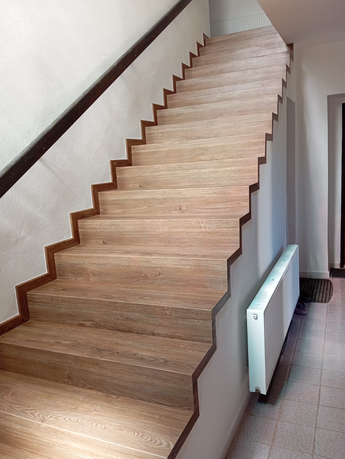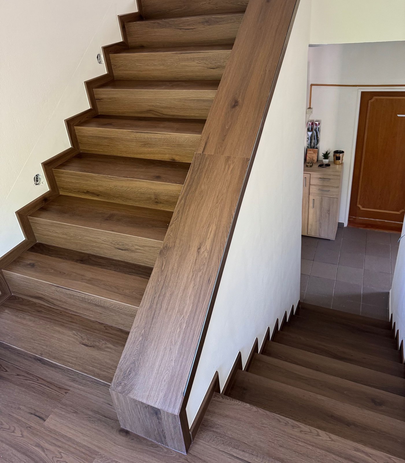 Představujeme jednu z našich nejnovějších realizací, která dokonale ilustruje precizní práci našich podlahářů. Tentokrát jsme se podívali na schodiště...