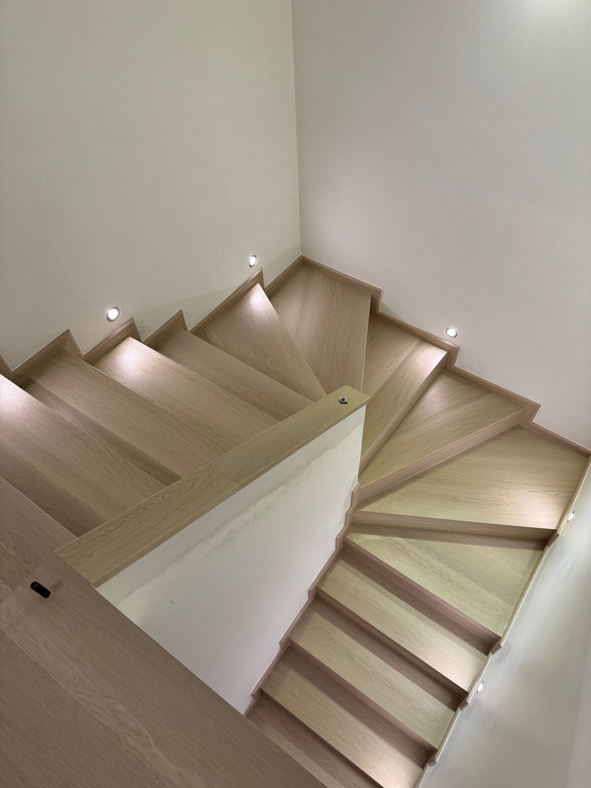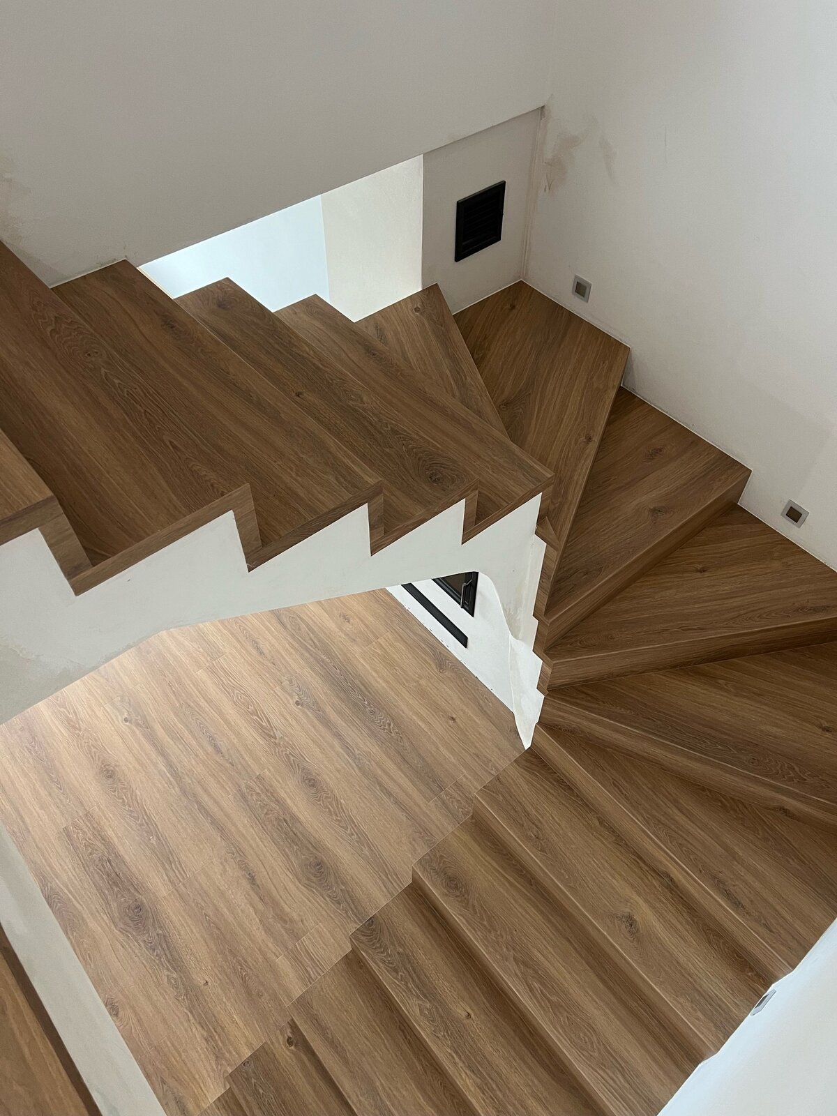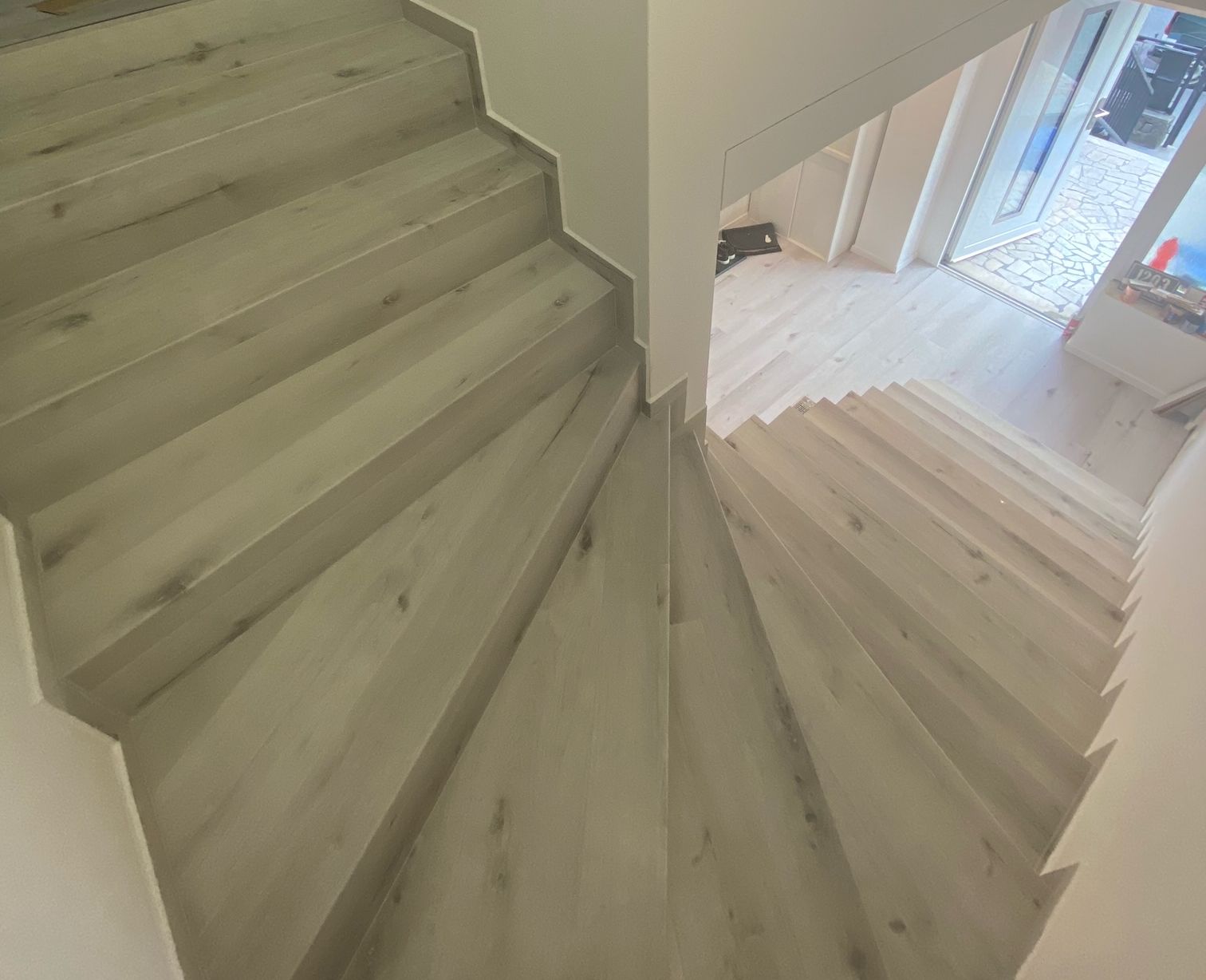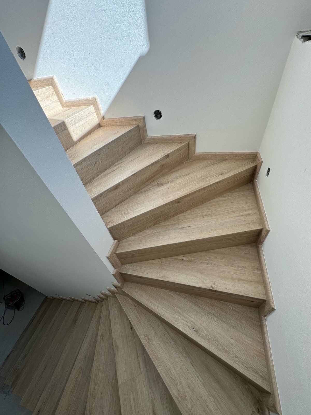 Představujeme jednu z našich nejnovějších realizací, která dokonale ilustruje precizní práci našich podlahářů. Tentokrát jsme se podívali na schodiště...